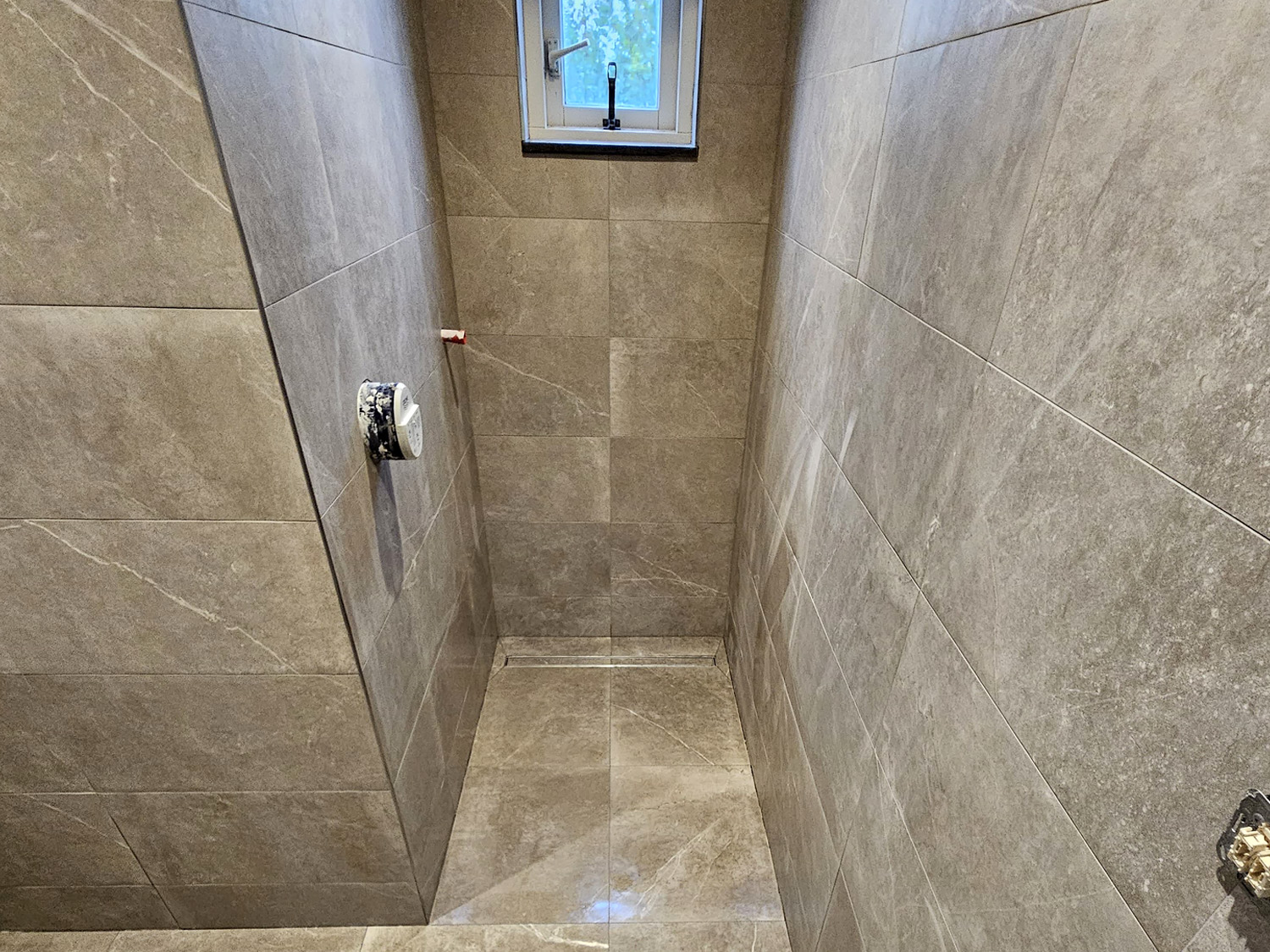 Veelgevraagde klus: alles eruit, opnieuw betegelen, leidingen verleggen, nieuw sanitair en alles strak afgewerkt. Ik zorg dat het klopt van vloer tot plafond.